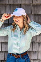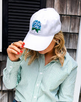 A tribute to coastal charm and cottage garden paths, the Hydrangea Bloom Hat captures the spirit of New England in full color. With delicate hydrangea embroidery on a perfectly fitted cotton cap, it’s designed for sun-drenched afternoons, salty breezes, and your favorite summer escapes.