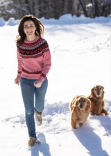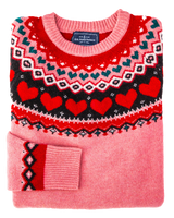 This special edition fair isle sweater features an adorable pattern of hearts against a plush pink canvas to make a loveable statement this winter.