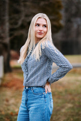 The Mayfair Check Ruffle Shirt is a pre-order item and ships on or around 12/30.
