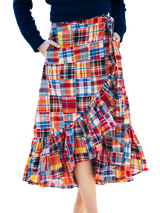 Our Nantucket Soirée Madras Skirt has arrived! It is the latest addition to our Madras Patchwork Collection. The patchwork design samples an array of our all time favorite Madras patterns for a bold summer statement. The wrap style adds a casual sophistication for special occasions or an effortless everyday look. This skirt is guaranteed to be a beautiful compliment to your summer wardrobe.