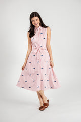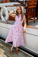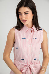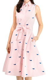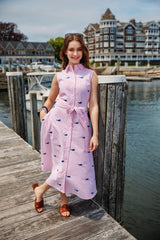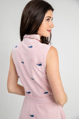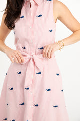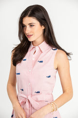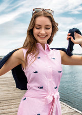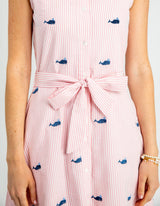 Embroidered with our signature whale motif, this crisp cotton seersucker shirtdress brings playful sophistication to your summer wardrobe. From morning errands to ferry rides, it’s the perfect piece to wear wherever the tide takes you.