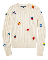 With a nod to maritime tradition, this sweater features an array of colorful signal flags embroidered across a timeless cable knit pattern. It’s crisp, classic, and made for everything a New England summer throws your way.