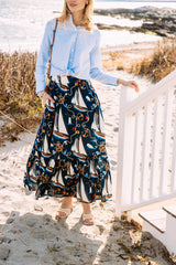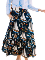 Sail into summer with our Mariner Skirt, you’ll love the stunning nautical print with vibrant sailboats, anchors, and other maritime motifs. It's a perfect showpiece to pair with your favorite summertime essentials.