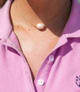 Our delicate twisted gold necklace holds a lustrous rice pearl for a subtle, elegant expression. Hand-tied with a classic nautical knot in our Rhode Island workshop, this piece is a timeless addition to any ensemble.
