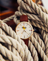 Set sail on a historic journey as we raise a toast to the 40th anniversary of the iconic Mount Gay Rum Red Cap. To commemorate this milestone, we've partnered together with the world’s oldest operating rum distillery to bring to life a one-of-a-kind adventure accessory. Every tick of the minute hand reveals the unwavering nautical spirit that embodies this limited-edition collaboration between KJP and MGR. Just like their signature rum, this watch showcases artistry in every thoughtfully curated detail - highlighted by the iconic Mount Gay Barbados logo gracing the watch face to the 40th anniversary red cap emblem adorning the back. With fewer than 200 ever being made, it stands as a rugged testament to the timeless spirit and authenticity that embodies Mount Gay Rum's profound impact on the sailing community. Embark on this journey of history, heritage, and lasting legacy with us.
