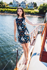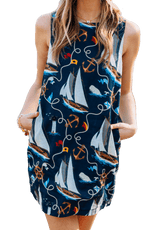 The Mariner Shift Dress is a perfect staple for any weekend trip. The comfortable and breezy shift silhouette is ideal for hot summer days, and you’ll love the stunning nautical print with vibrant sailboats, anchors, and other maritime motifs.