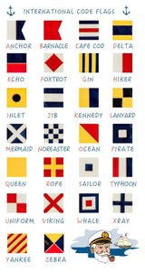 Please consult our nautical flag decoder picture in order to figure out what your initial will look like, as product pictures on this page do not reflect all initial options.