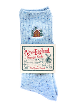 Put your coziest foot forward in our limited edition New England donegal socks. It's our spin of the yarn take on an Irish classic. We kept the signature feel and flecks you're used to in a donegal but added a distinctly New England touch with our seaside embroidery.