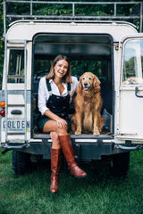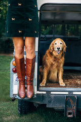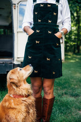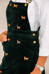 Orders for the American Retriever Corduroy Jumper Dress in Green placed on or after 9/30, ship on or around 11/30.