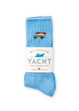 Hop aboard you smooth sailors, it's time to slip off those boat shoes, flip on that captain's hat and pop some vintage bubbly. These lush sea socks are guaranteed to keep those trivial conversations and Rum Swizzles stirring. Forecast says 82 degrees with clear skies all day, everyday, so throw on your Yacht Socks and let's sail away. Bon Voyage!