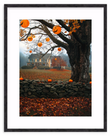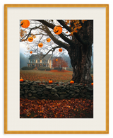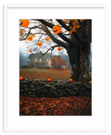 Pumpkin Lanterns Adorn An Old Maple Tree.
