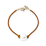 Crafted in our coastal Rhode Island workshop, the leather and freshwater pearl harks back to days on the beach under a setting sun. Each lustrous rice pearl is hand-tied with a double knot for a subtle, elegant expression. Offered in five delicate shades of summer, it’s a contemporary classic and shines brightest where the waves meet the sand.