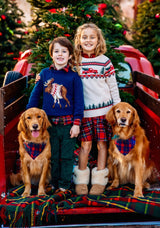 The most all-American snow falling, s’more roasting, cocoa sipping, nice list listing, snowman making, eggnog nogging, gingerbread baking, Santa’s got a brand new sleigh for the holidays kids Christmas sweater!