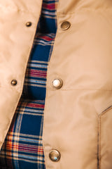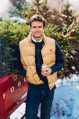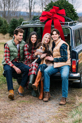 The Cozy Cabin Puffer Vest is made for spontaneous crisp outdoor adventures. Lightweight yet protective, its 100% polyester shell and fill block out the elements without weighing you down, while our cozy plaid flannel lining wraps you in warmth and comfort. Finished with thoughtful details like custom KJP brass buttons and our iconic cabin emblem on the chest, this vest captures the spirit of the outdoors with every wear.