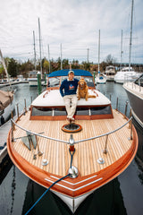 The spirit of summer adventure lives on in the American Sail Intarsia Sweater. With its finely knit American Flag sailboat motif and classically sporty feel, it’s a piece that captures time well spent at sea—or simply dreaming of it.
