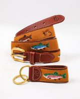 Cinch up the perfect summer look with our ribbon belts. Thoughtfully crafted from durable canvas and supple 10oz leather, these belts capture a timeless preppy aesthetic. Featuring a sporty fly fishing design, add some extra personality to your chinos, shorts, or jeans for any summer occasion.
