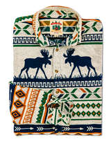 All hail the Great Moose, a legend named by the people of the Narragansett tribe, that has ruled for millennia in the deep woods of the North. Our Great Moose Flannel is as soft as the velvet that adorns his antlers and, like the king of the wilderness, is at home on those cold New England nights.