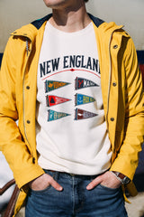 Crisp ocean breezes, changing seasons, and the timeless charm of harborside towns, New England is unlike any place in the world. This ultra soft sweatshirt made in the USA features hand-drawn flags for each of our beloved six states.