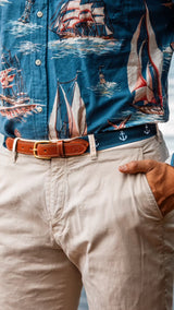 Cinch up the perfect summer look with our ribbon belts. Thoughtfully crafted from durable canvas and supple 10oz leather, these belts capture a timeless preppy aesthetic. Featuring patterns from nautical to sporty, add some extra personality to your chinos, shorts, or jeans for any summer occasion.