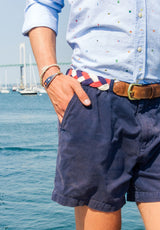 Our hand-braided sailing belt is crafted using the highest quality vegetable tanned leather and twisted nautical cord.