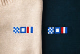 Readable only by true mariners, each sweater is embroidered to reflect the letters of your choice using the corresponding Signal Flag to your initials.