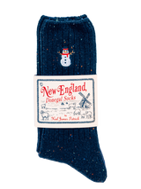 Put your coziest foot forward in our limited edition New England donegal socks. It's our spin of the yarn take on an Irish classic. We kept the signature feel and flecks you're used to in a donegal but added a distinctly New England touch with the snowman embroidery.