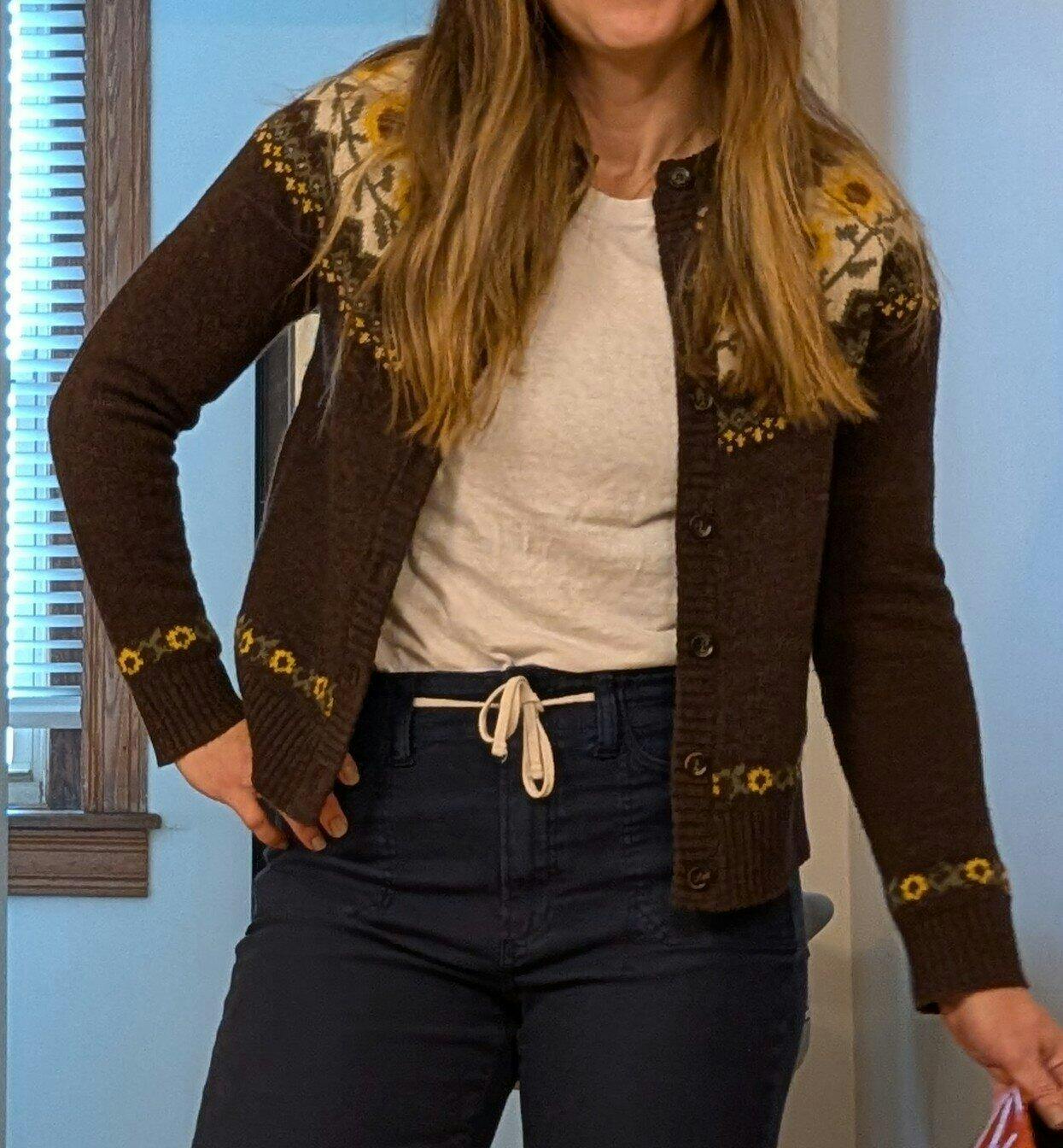 I went back and forth for weeks debating whether to buy this cardigan. I've never bought from KJP before, and so many things look really cute online but then are disappointing or low quality in "real life," so I tend to shop at the same stores all the time. But I am SO glad I finally gave in and bought the squirrel cardigan. It's absolutely adorable. I usually wear a 1x (16/18), and ordered an XXL in this and it's perfect - not too tight, not too loose. Quality appears excellent. I will definitely be ordering again!