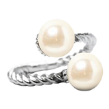 The pearls on this elegant ring sit in open scallop shells attached by a band featuring a natural rope motif, the fibers of which are carefully preserved through the polishing process, resulting in a truly unique ring.