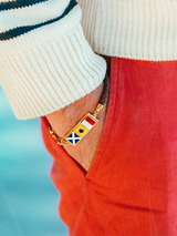 Set sail with your Sailorgram. Readable only by true mariners, each piece is custom painted by hand to spell your initials in signal flags. The perfect accessory for pirates, sailors and merpeople.