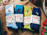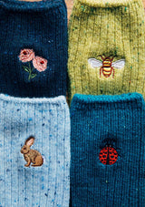 Put your coziest foot forward in our limited edition New England donegal socks. It's our spin of the yarn take on an Irish classic. We kept the signature feel and flecks you're used to in a donegal but added a distinctly New England touch with our seasonal flower embroidery. Warm and well-made, they're the perfect cozy companion to all your crisp weather adventures.