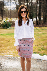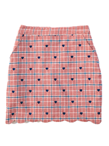 Elevate your wardrobe for date nights or anytime with our Aubrey Heart Skirt. Adorned with delightful navy embroidered hearts, this charming piece adds a touch of romance to any occasion!