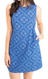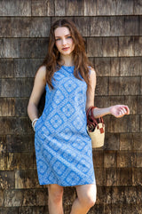 A tribute to summering on the coast, the Summer Blues Paisley Shift Dress is tailored in a classic silhouette with a refined ease that feels right at home from Newport lawns to Nantucket strolls.