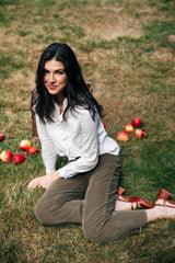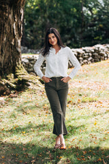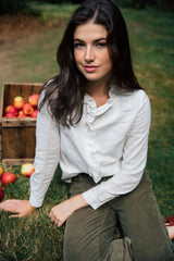 The Harrington Ruffle Shirt is a pre-order item and ships on or around 10/20.
