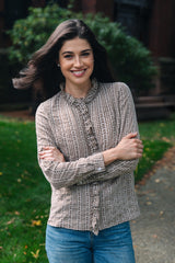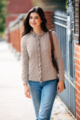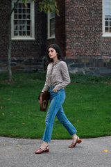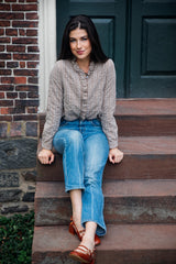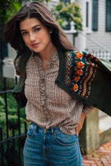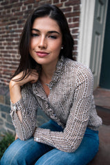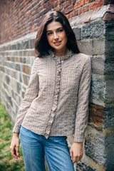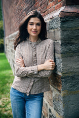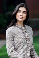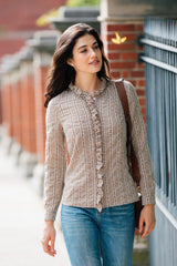 The Mayfair Check Ruffle Shirt is a pre-order item and ships on or around 10/20.