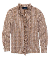 A fresh take on the classic women's oxford--this ruffle front shirt adds a festive flair to any ensemble.