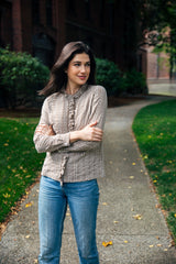 Orders for The Mayfair Check Ruffle Shirt placed on or after 10/7 in sizes XS, S, M, L, XXL ship on or around 11/10.