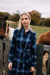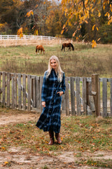 Our Cozy Cabin Flannel dresses are washed with a special process to preshrink them and make them buttery soft in order to ensure that this will be your favorite Fall dress for years to come. We've revised the fit this year to add a touch of length to the skirt and to make sure the dress fits just perfectly.