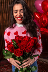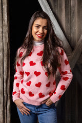This charming sweater, adorned with delicate scalloped edges and heart motifs, effortlessly blends comfort and romance. Whether you're stepping out for a romantic evening or lounging at home, this versatile piece sets the mood.