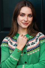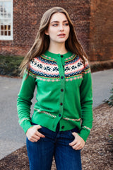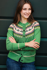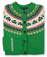 A special edition to our Cardigan collection. Crafted from 100% cotton, this piece balances comfort and festive fun with a clover fair isle pattern designed to be worn often, lived in comfortably, and enjoyed season after season.