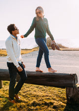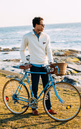 A Rum Swizzle, pink sandy beaches, and a luxuriously soft pullover is the Bermuda triangle you’ll long to be lost in. Throw this on over a bathing suit or under a cloudy sky, perfect for days by the water and dinner by tiki torch. It’s a three day smooth sailing weekend feeling you can zip up.