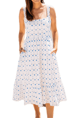 Evoke the spirit of seaside adventures with our Summer Eyelet Dress, embellished with delightful shell and sailboat motifs, perfect for sunny days by the shore. Allow its charming design to carry you to coastline retreats, where soothing breezes and the sound of waves beckon!