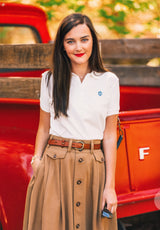 Introducing our Women’s Polo Shirt Collection -- This summer classic is available in 3 colors and embroidered with our signature logo. Inspired by your favorite vintage polo shirt, this comfortable summer staple is designed for everyday wear. Whether you’re on the court or catching some sun, you’ll be sure to live in this polo all summer long. Pair it with you favorite denim shorts or tennis skirt.