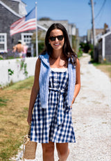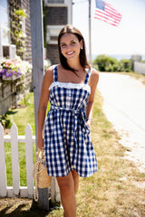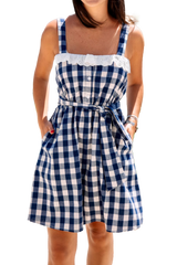Introducing the Island Holiday Dress – your go-to summer staple for warm, sun-kissed escapes. With its breezy navy and white checkered pattern and a touch of elegance in the eyelet lace neckline, this dress effortlessly captures the essence of carefree vacations. Whether you're strolling along the beach or sipping cocktails at sunset, let the Island Holiday Dress be your perfect companion for a season of sun-soaked memories!