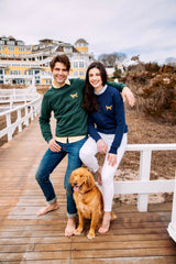Styling one of these locally embroidered sweatshirts is a walk in the park with two beautiful and classic colors available - Navy and Forest green. They’re perfect for layering and look great dressed up with an Oxford underneath. Or on those warmer days when you just want to play with your pup, the super soft brushed fleece interior makes layering them down a comfy option as well.