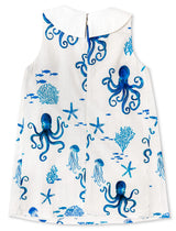 Embrace the whimsical spirit of summer in our Octopus Garden Shift, adorned with vibrant hues of blue reminiscent of an underwater paradise. Let the playful charm of this dress transport your little one to a world of sunshine and sea breezes!
