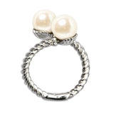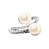 The pearls on this elegant ring sit in open scallop shells attached by a band featuring a natural rope motif, the fibers of which are carefully preserved through the polishing process, resulting in a truly unique ring.