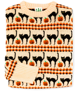 Spooky Season and Cozy Season collide in this limited edition fall sweater. The hues of halloween are featured prominently with black cats and orange pumpkins. We think it’s the purr-fect companion to all your frightfully fall fun to come.