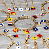 Sail away with our Sailor’s Solitude Charm Bracelet. Readable only by true mariners, each piece is hand-painted to reflect the letter of your choice using your initial’s corresponding Signal Flag.