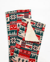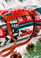 A KJP cold weather favorite, The Christmas Patchwork Blanket has finally returned. Lined in an ultra soft Sherpa fleece and adorned with our festive fair isle, it's the perfect accessory for sharing and snuggling by the fire. Our genuine leather carrier ensures that these warm and cozy moments go wherever you go.